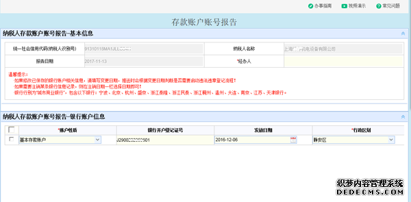 3、存款账户账号报告 点击税务登记-存款账户账号报告,填写银行开户信息,请务必确保银行信息正确,否则到时候三方协议签订不成功。 如图五: