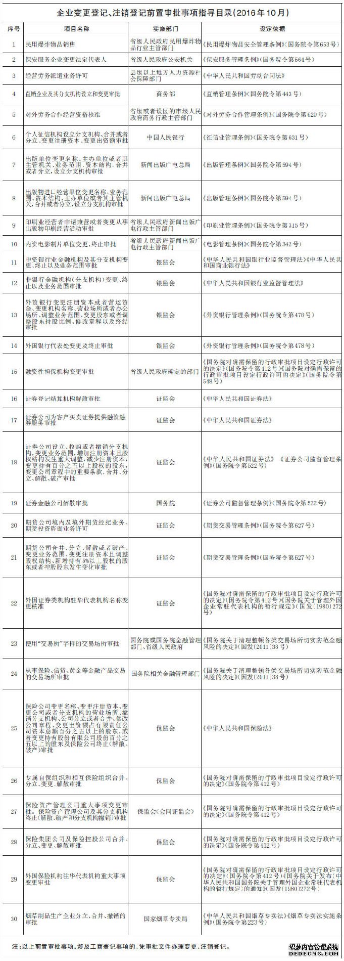 2016年9月3日,第十二届全国人民代表大会常务委员会第二十二次会议通过了《修改〈中华人民共和国外资企业法〉等四部法律的决定》(中华人民共和国主席令第51号),对《中华人民共和国中外合资经营企业法》《中华人民共和国中外合作经营企业法》《中华人民共和国外资企业法》以及《中华人民共和国台湾同胞投资保护法》相关行政审批条款进行修改,将不涉及国家规定实施准入特别管理措施的外商投资企业的设立和变更,由审批改为备案管理。据此,我局对《工商总局关于严格落实先照后证改革严格执行工商登记前置审批事项的通知》(工商企注字〔2015〕65号)附件《工商登记前置审批事项目录》和《企业变更登记、注销登记前置审批指导目录》再次进行了调整,现予公布。请遵照执行。