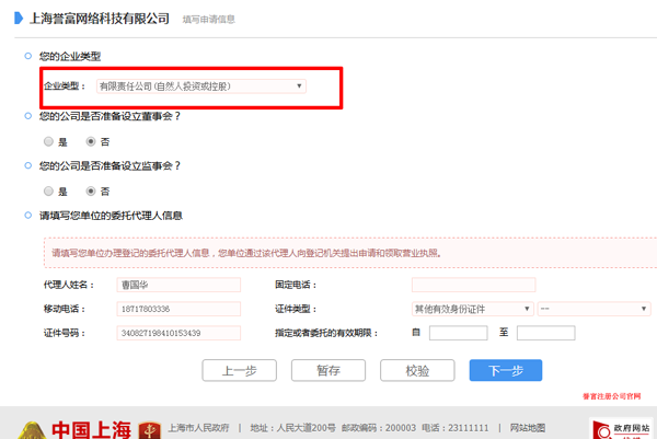 依次填好法人代表的相关信息,下一步也很简单前面小编已经讲解过,今天就不重复在详细讲述了。