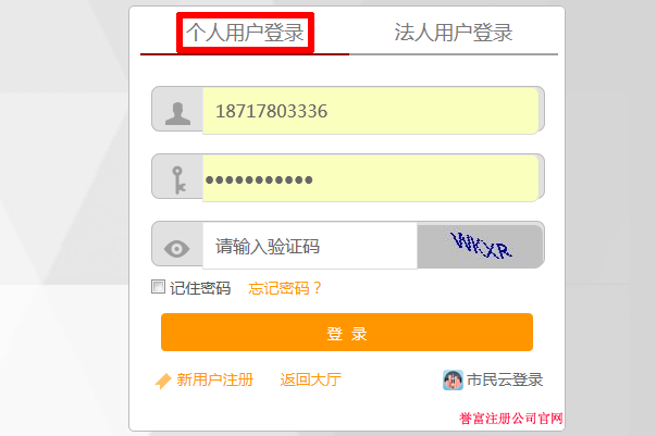 对于一般的创业者来说只要选择个人用户登录就可以了,如果您还没有注册一窗通网站用户,就点击上图的“新用户注册”,点击完了之后进入如图所示页面: